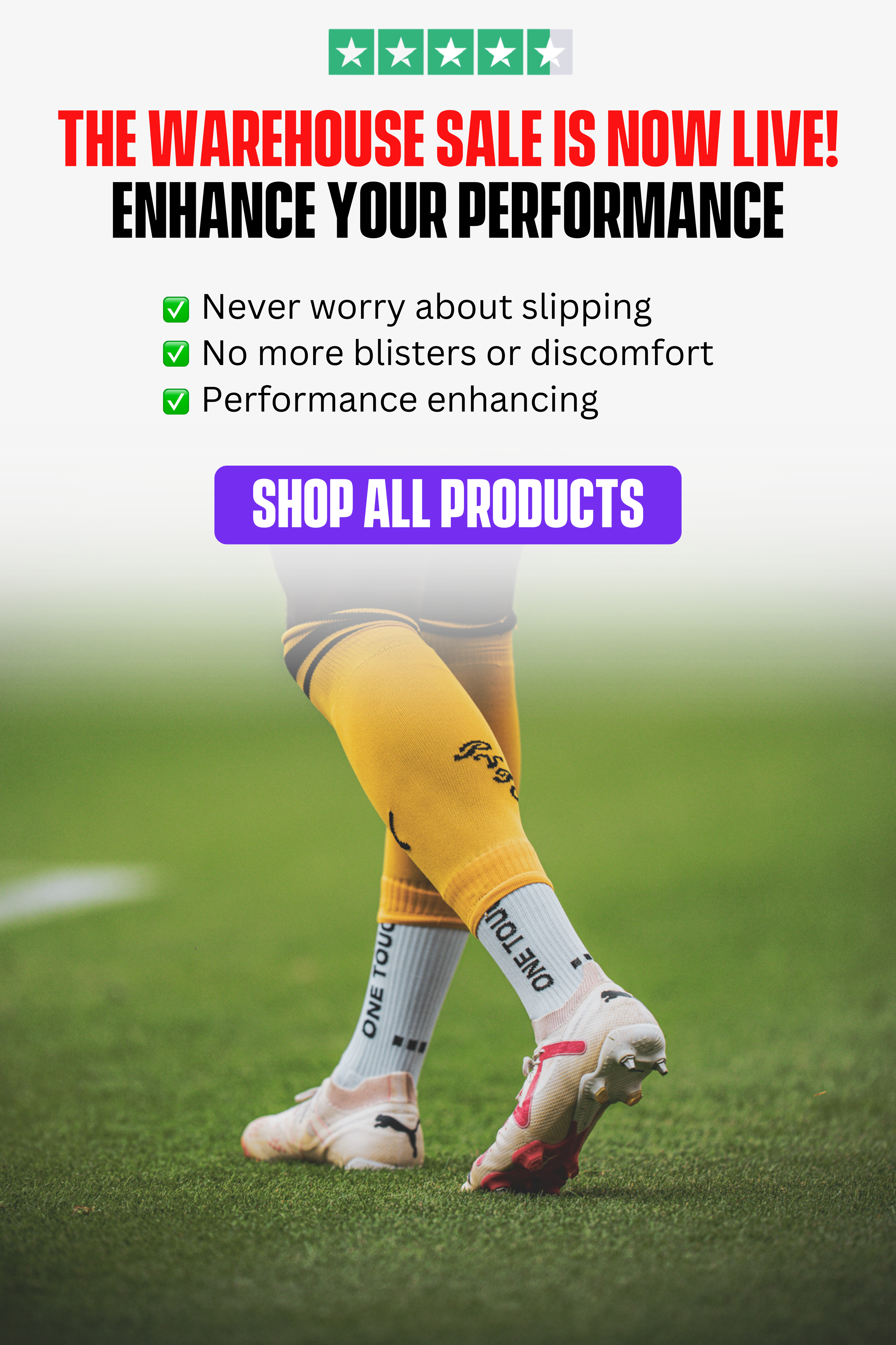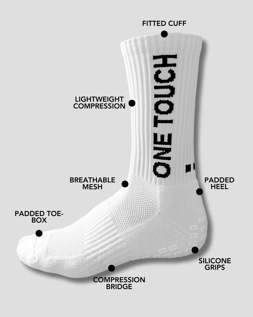 Elevate your performance with OneTouch 2.0 Socks, engineered for athletes who demand premium quality and precision. These socks are crafted to enhance speed, control, and stability while drastically reducing the risk of injuries. Designed to prevent foot slippage and eliminate blisters, they offer unparalleled comfort and support during every match or training session.